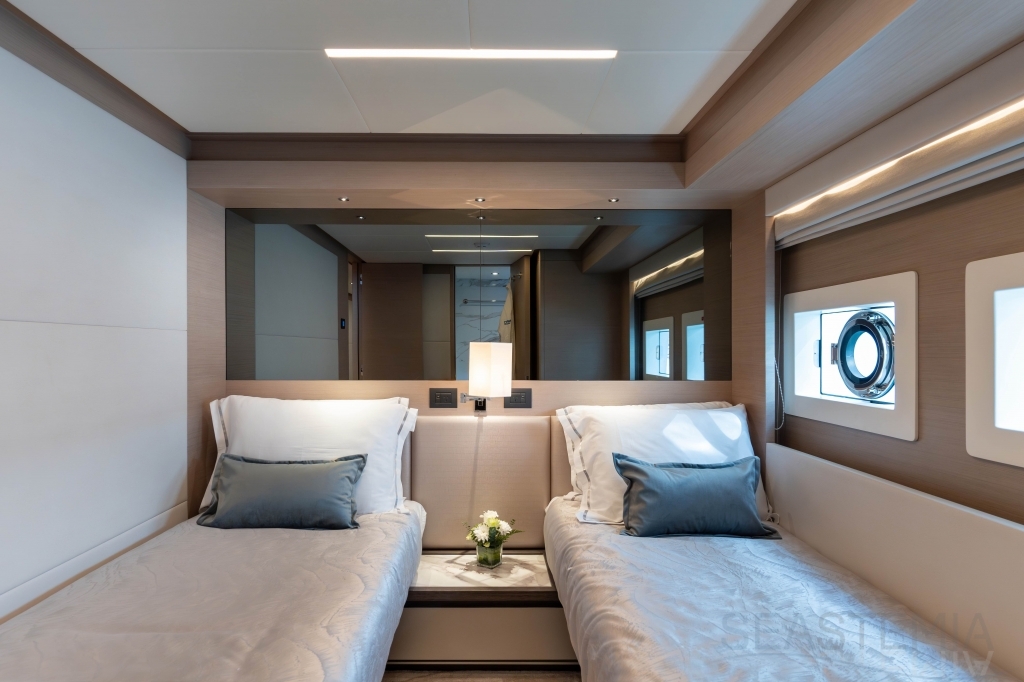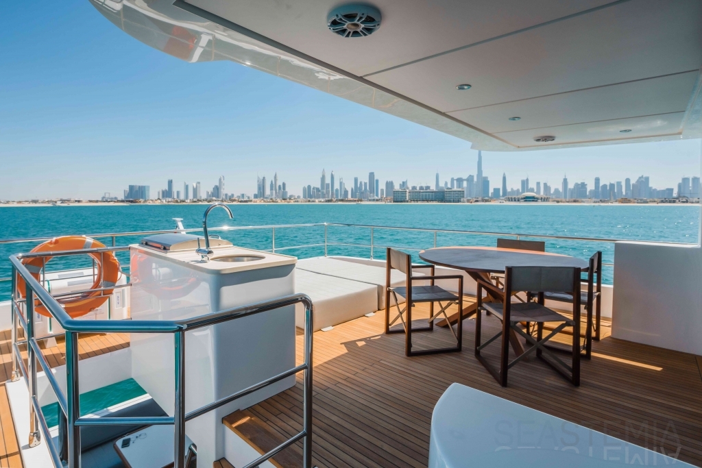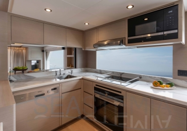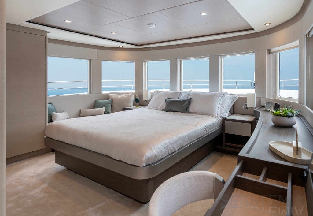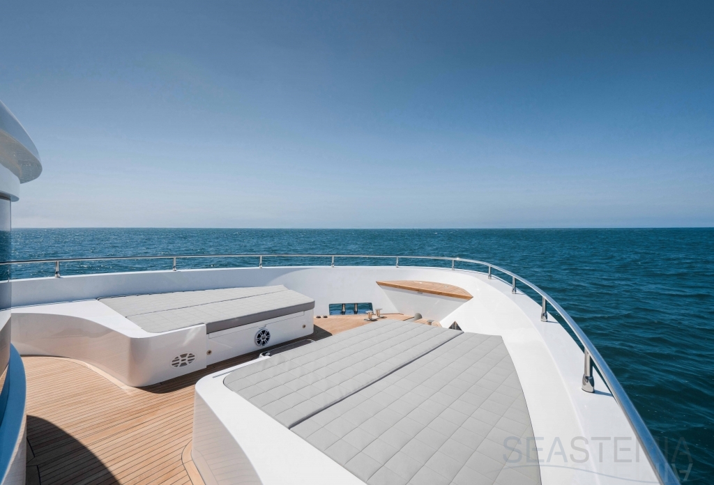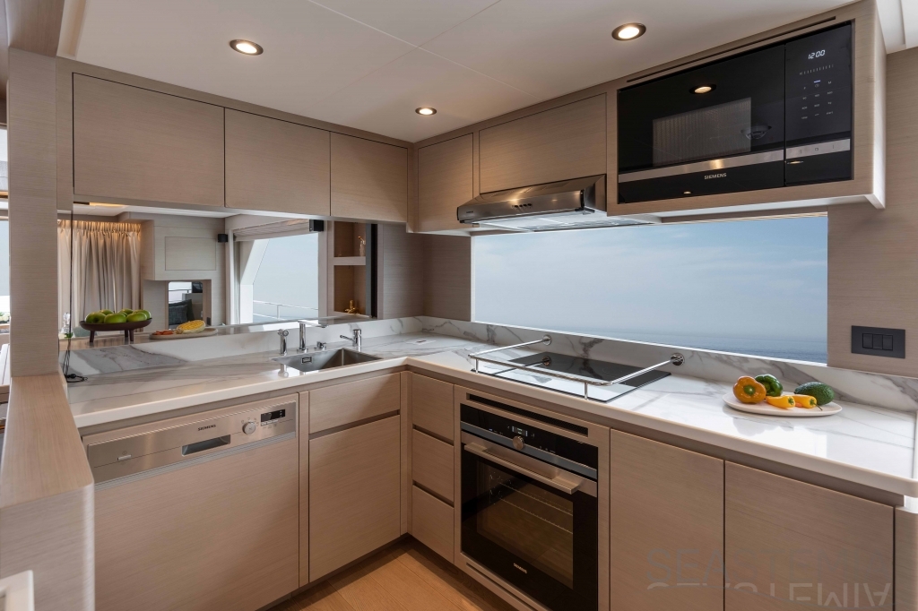It delivers a lot of yacht and amounts of storage and capacity to go beyond the normal cruising distances, with a range of 2,300 nautical miles at a comfortable 12 knots.