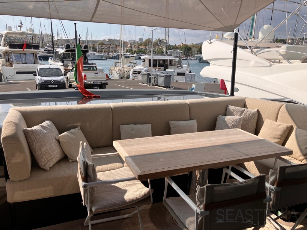 The elevated aft cockpit ensures both privacy and a welcoming atmosphere, with smooth access to the galley and main deck dining area—perfect for entertaining guests in absolute comfort.
