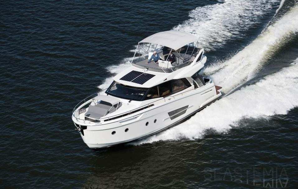 The Greenline 45 Fly is a yacht that combines pleasure with environmental responsibility. Designed to deliver optimal comfort, it offers three beautiful cabins, a spacious flybridge, and a modern interior finished with high-end materials. Thanks to its solar panels, it optimizes energy consumption while ensuring smooth and quiet cruising.