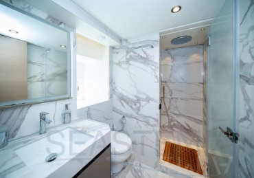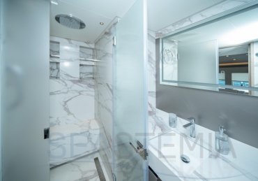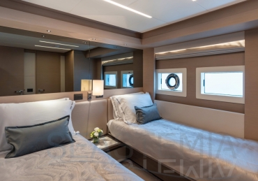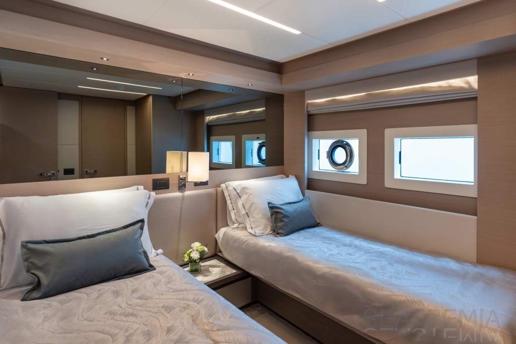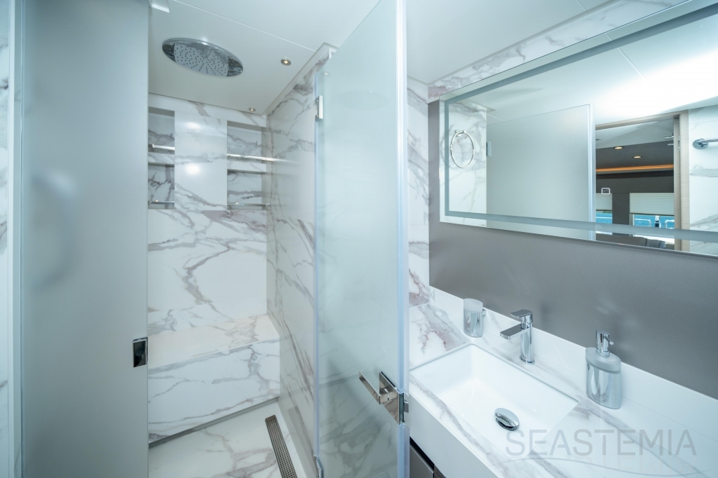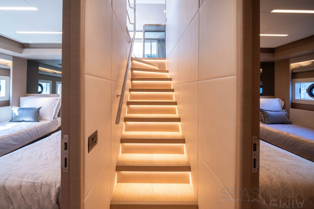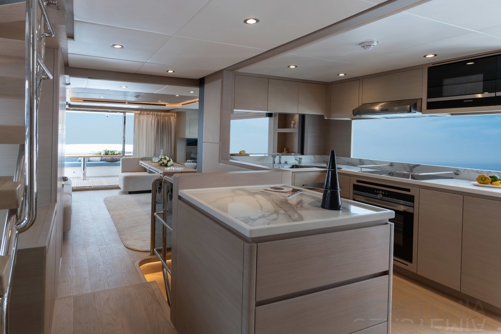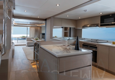 It delivers a lot of yacht and amounts of storage and capacity to go beyond the normal cruising distances, with a range of 2,300 nautical miles at a comfortable 12 knots.