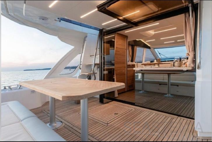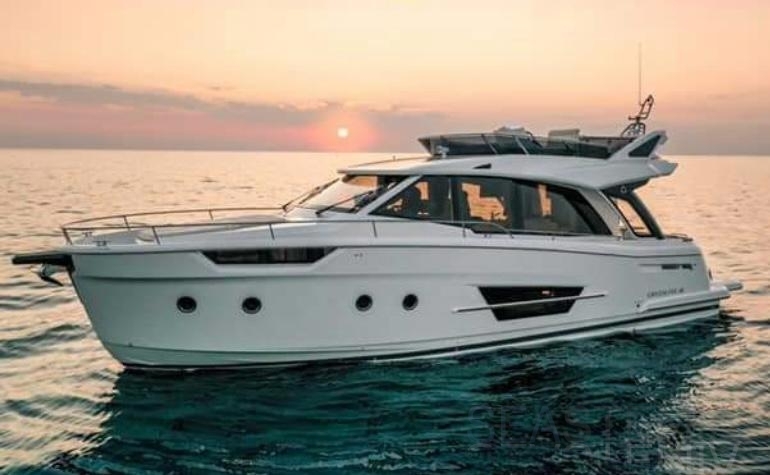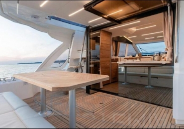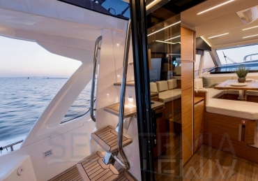 The Greenline 45 Fly is a yacht that combines pleasure with environmental responsibility. Designed to deliver optimal comfort, it offers three beautiful cabins, a spacious flybridge, and a modern interior finished with high-end materials. Thanks to its solar panels, it optimizes energy consumption while ensuring smooth and quiet cruising.