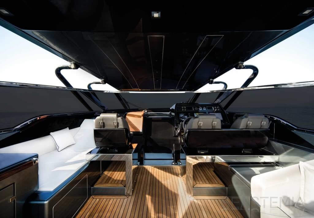 The new Riva convertible 76’ Bahamas is the second model with a dual soul, as both open and coupé. The patented “C-Top” (‘Convertible Top’) system enables a yacht to be transformed from open to coupé mode and vice versa. On the 76’ Bahamas, it effectively doubles the comfort and fun to be enjoyed on board. The new masterpiece brings together the charm of timeless design with the sophisticated pleasure of technological innovation that has produced a super sports boat. With graceful lines and rich in technical features, it is built using cutting-edge materials and sails like a dream. The new model is a further step in the evolutionary path that led to the launch of the 88’ Domino Super and 88’ Florida, the coupé and convertible yachts born of the same design tradition and guided by a similar spirit. Besides, the yacht is based on the technical platform of the 76’ Perseo, Riva’s much-desired coupé model. The layout of the cockpit and helm station, the design of the master suite and lower deck living space, as well as the entire interior styling, have been custom designed for the new convertible. The interior décor also enhances the yacht's Mediterranean character.
